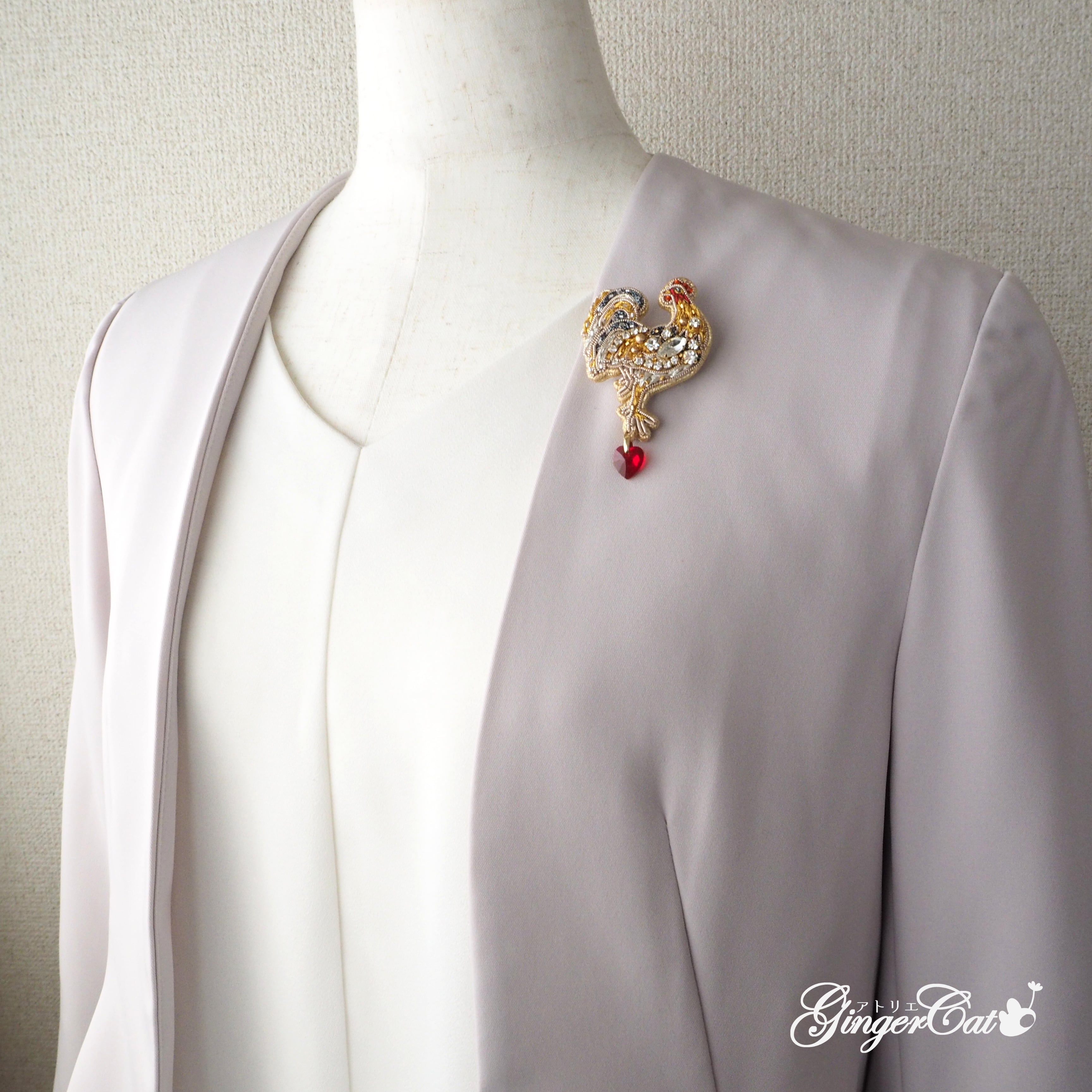日本画に出てくるような鶏をイメージした干支ブローチ【酉】です。